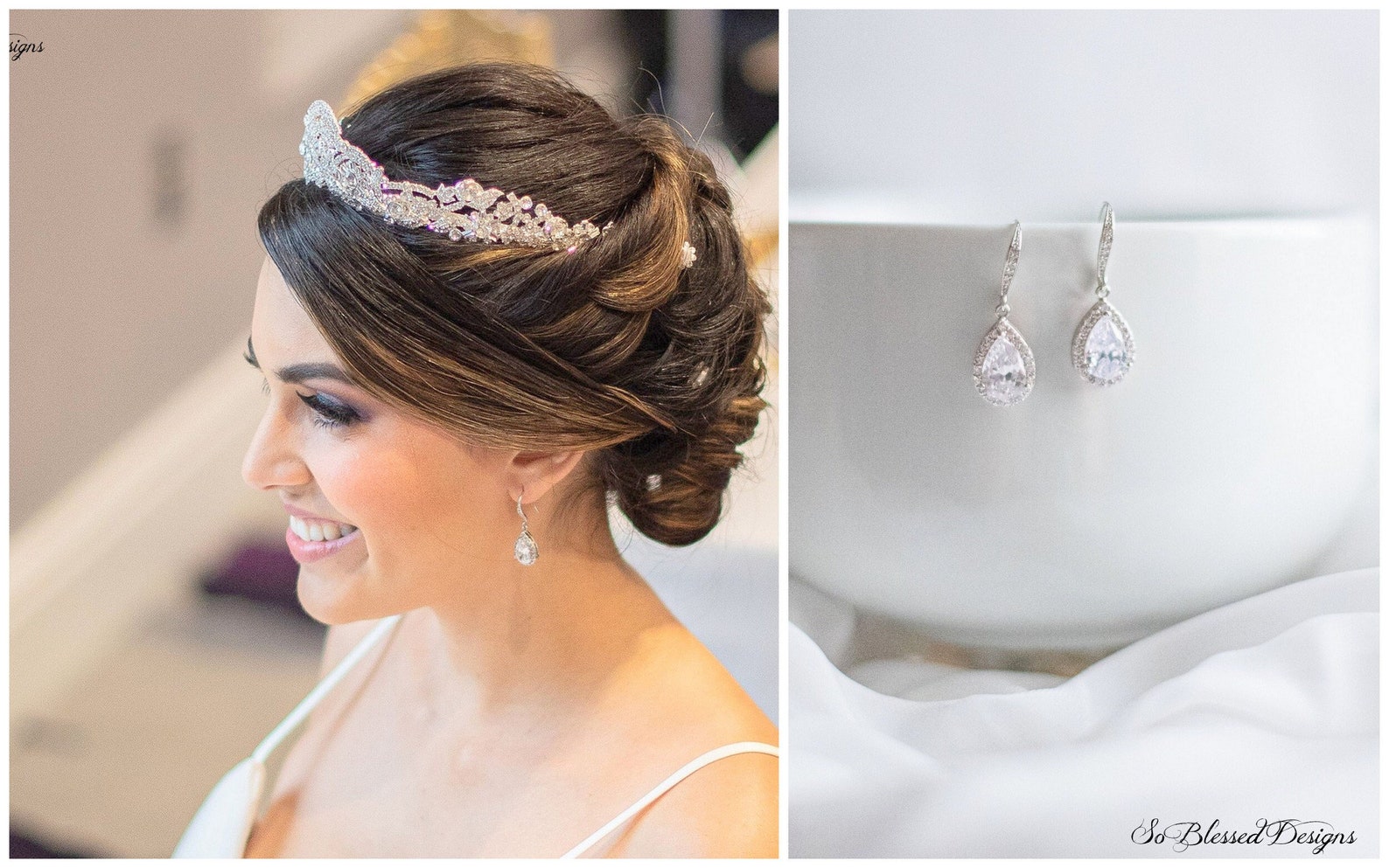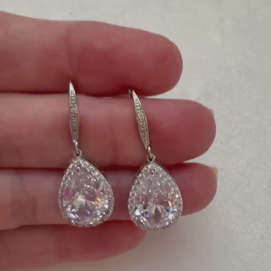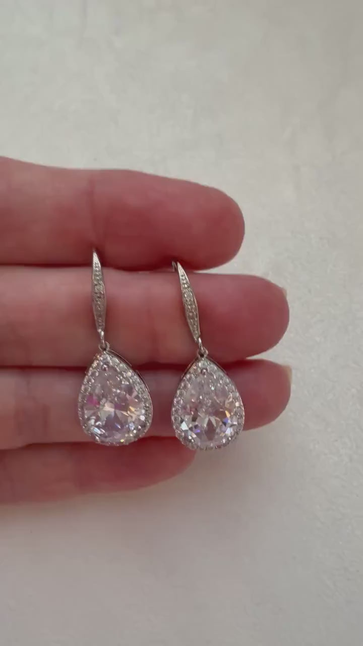 Timeless & stunning, our Elegant Teardrop Dangle earrings are beautifully designed with teardrop shaped stones surrounded by a halo of Cubic Zirconia stones. Handcrafted with love, you will want to wear these pieces long after your special day.